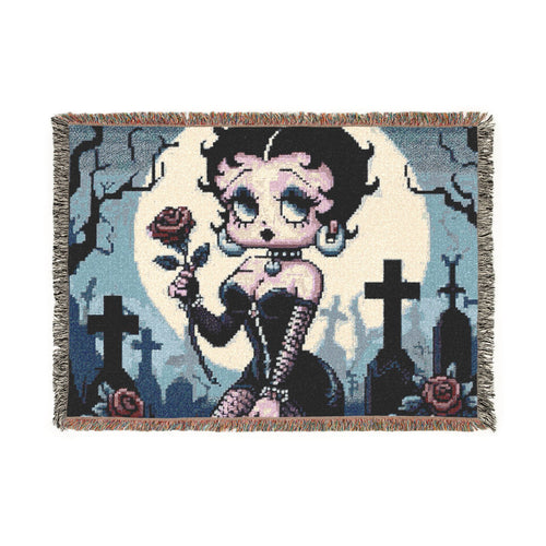 Betty Boop Gothic Cemetery Woven Blanket — Retro Pinup Moonlight Throw